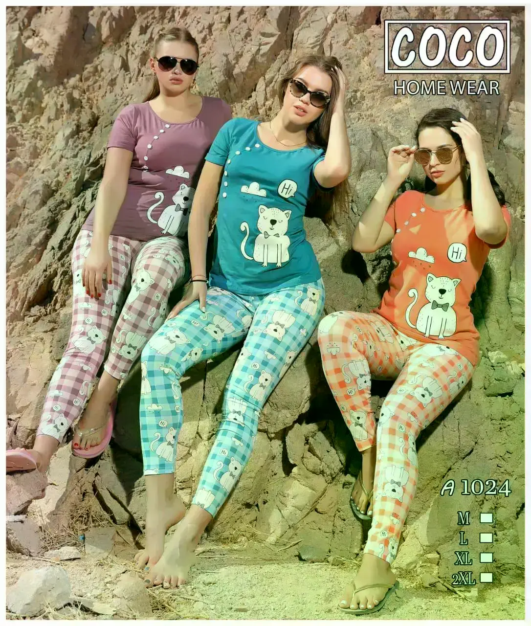 بجامه قطن بنطلون كروهات اللون الفيروزى مقاس L