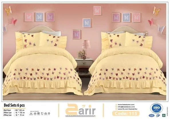 جديد من بلدي موديل الفراشه من بلدي تكس موديل مطرز من بلدي تكس اطفال برسمه فراشه خامات قطنيه حرير 115 عدد : 6 قطع ( 2 ملايه - 2 خداديه - 2 مخدة )متوفر لدى وكلاء بلدي تكس فى محافظات مصر,للتواصل من خلال التليجرام :https://t.me/baladytextilehttps://www.instagram.com/baladytextile/Info@baladytex.com