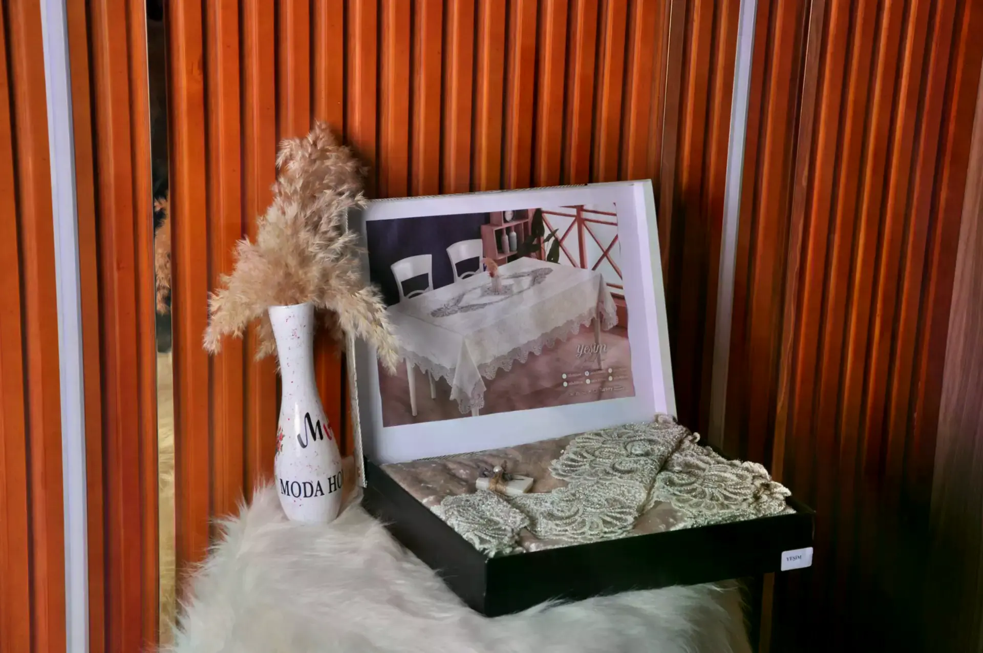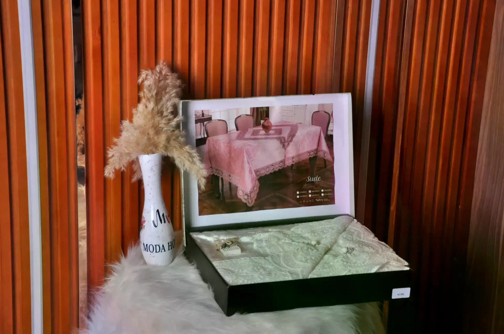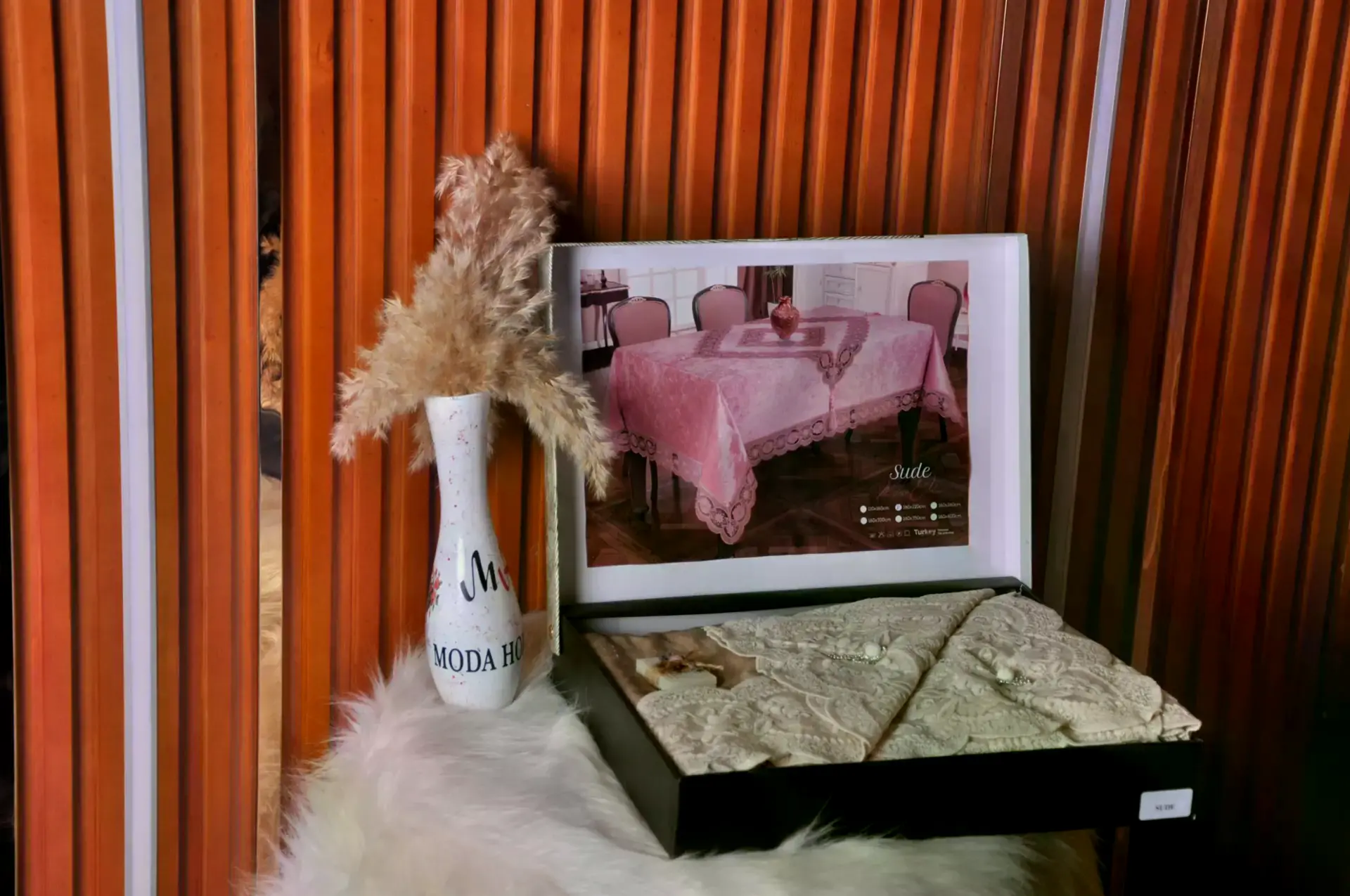 مفرش سفره تركي (17) قطعه مفدش م (160*220)8 مناديل م (35*35)8 خراتم مناديل