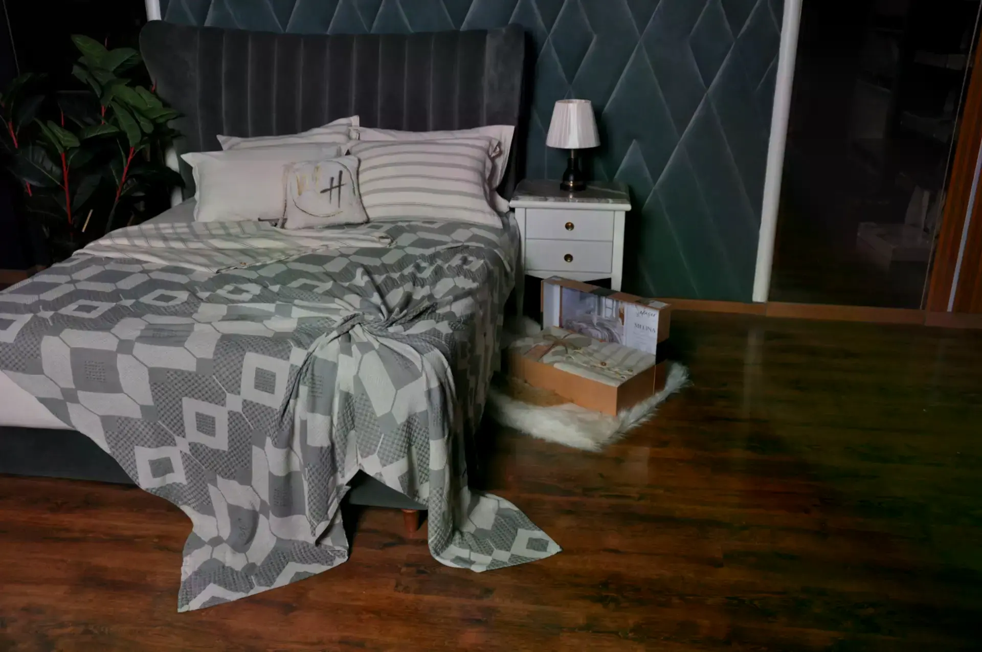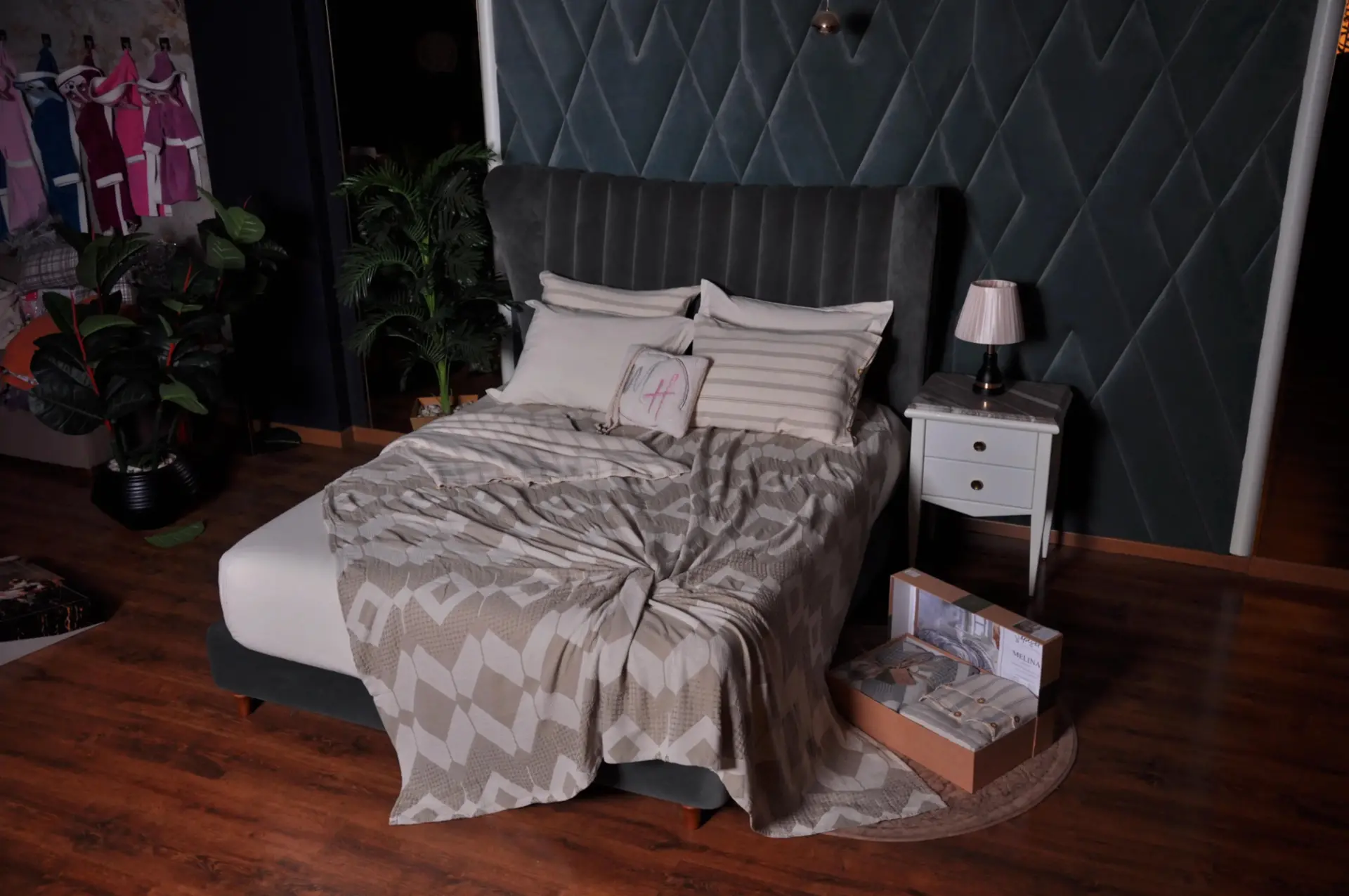 كوفرته تريكو تركي (7) قطع كوفرته م (220*240)ماتريال تريكوملايه م (240*260) ماتريال كتانكفر لحاف م (240*260)ماتريال قطن2 خداديه ساده م (50*70)كتان2خداديه مقلمه (50*70)كتان